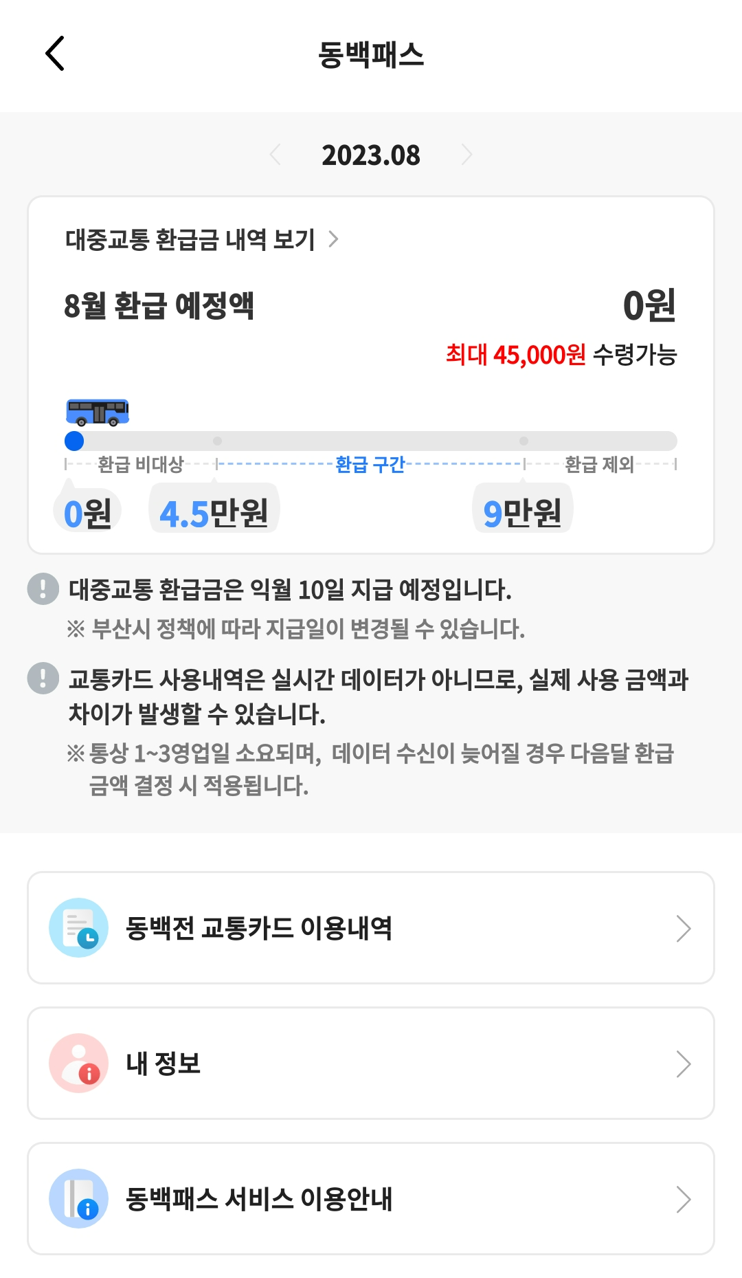 즉, 최소 4만 5천원부터 최대 9만원 사이의 교통비까지 최대 4만 5천원이 환급이 가능