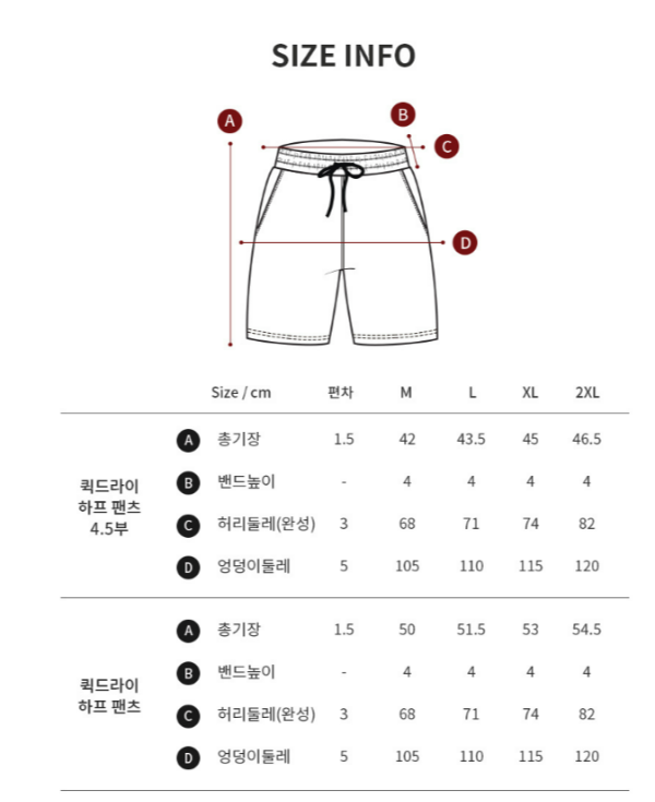 4.5부와 그냥 하프 팬츠로 나누어져있고