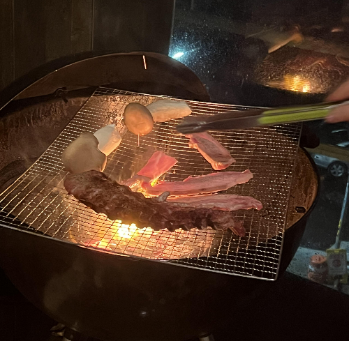 그대로 비 맞으면서 고기를 구워야 합니다.