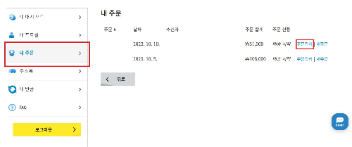 좌측에 내주문에 들어가서