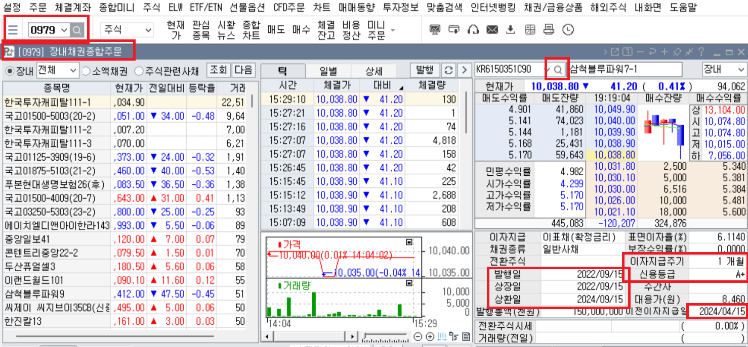 장내채권종합주문 창이 나온다.