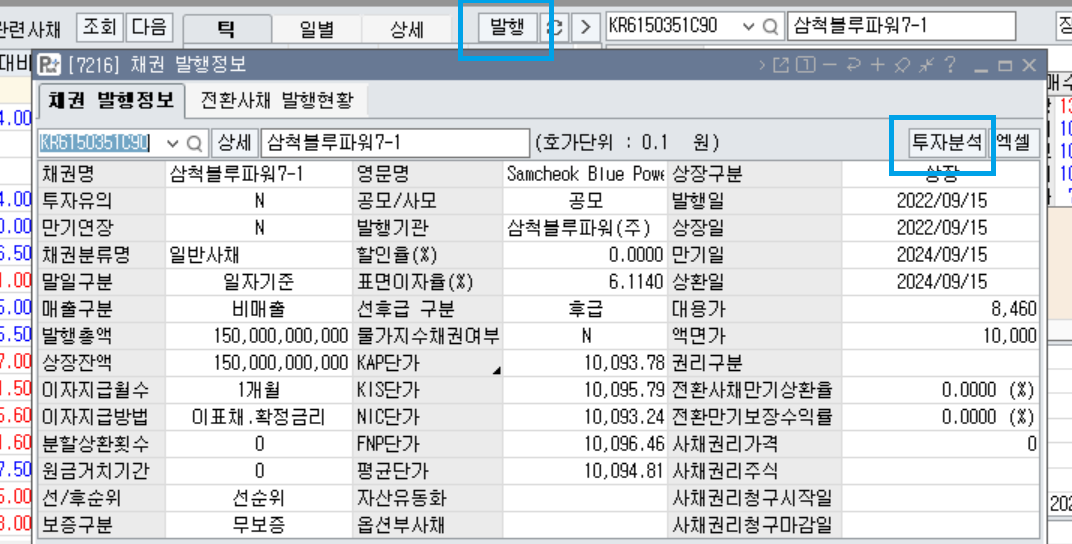 2. 발행을 클릭하면 채권 발행정보가 나오고