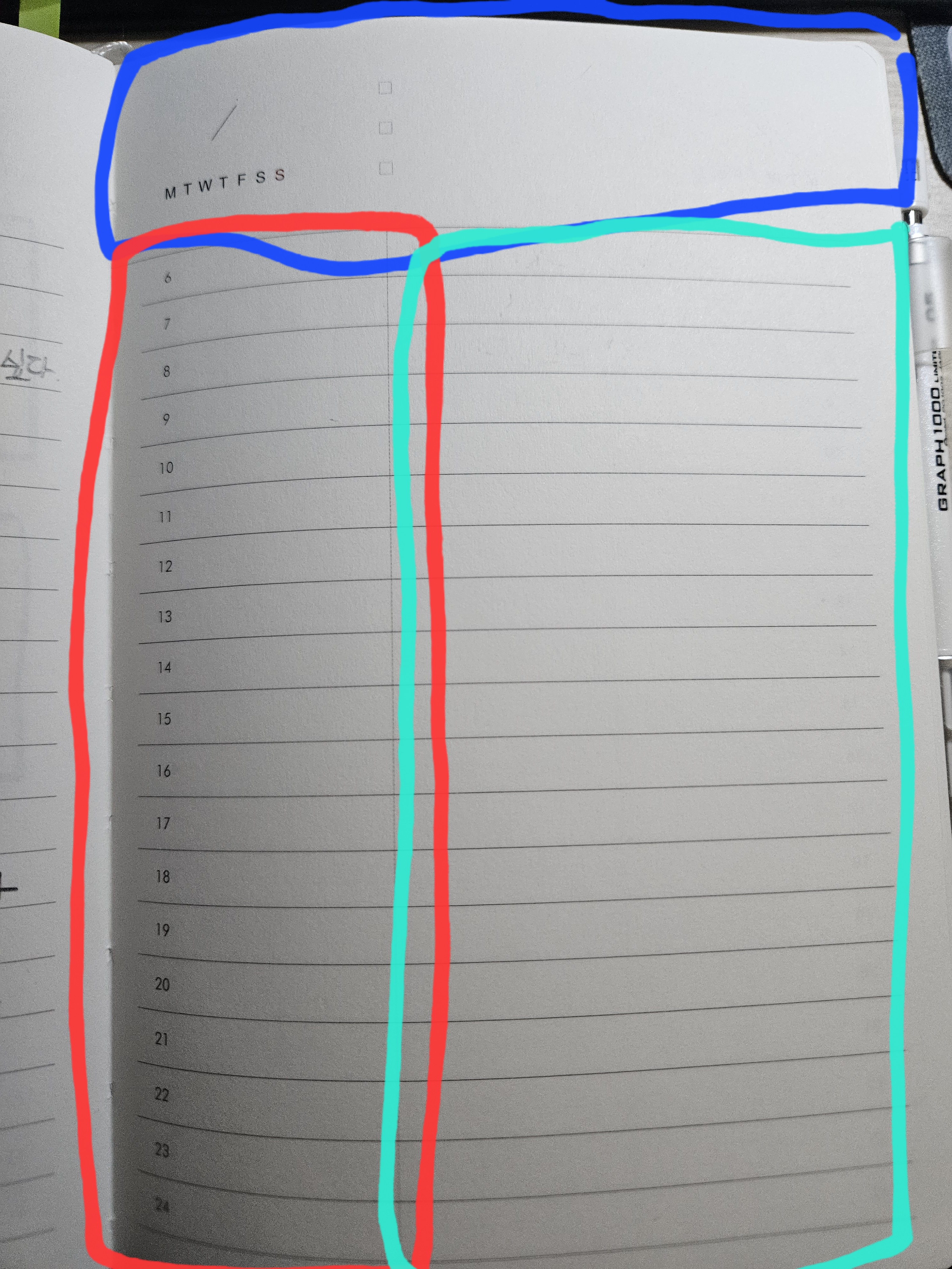 그래도 꾸준히 쓴다면 6달 정도면 연간플래너를 다 쓸 것 같아 다음 번에는 무조건 월간 플래너로......ㅋㅋㅋ