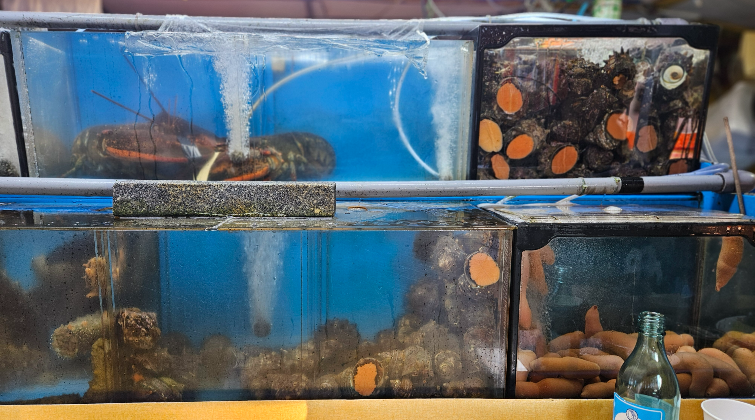 아, 자리는 양옆이 있고 수조 앞이 있는데