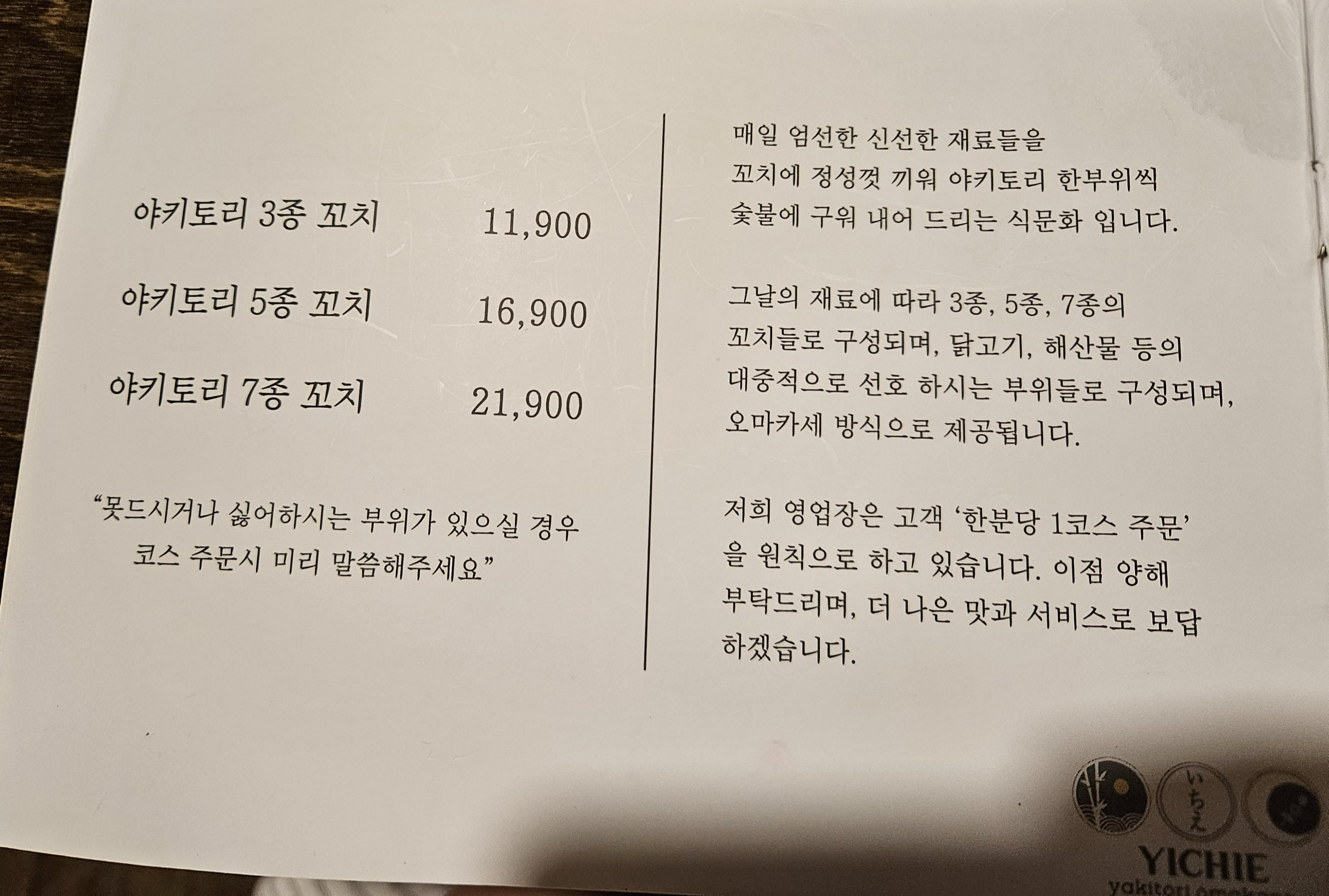 야키토리 오마카세라고 적혀져있다.