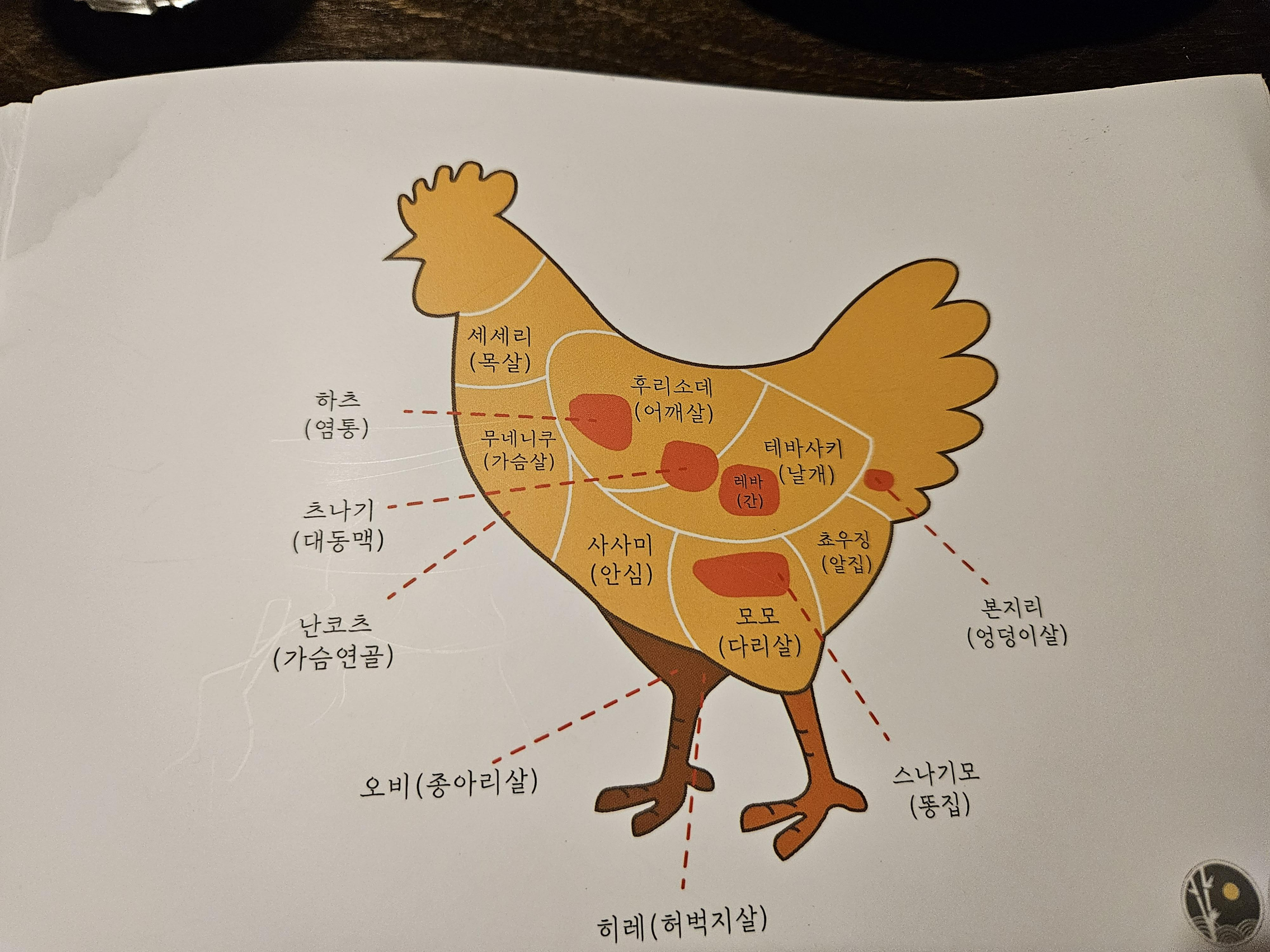 닭의 부위별 이름을 설명해주는데