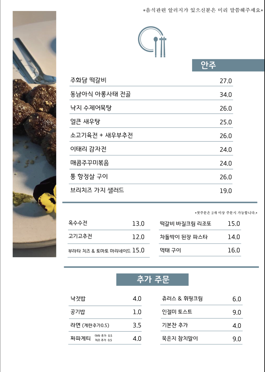 지금 올려둔 메뉴판의 가격보단 조금씩 다 오른 것 같은 느낌이다.