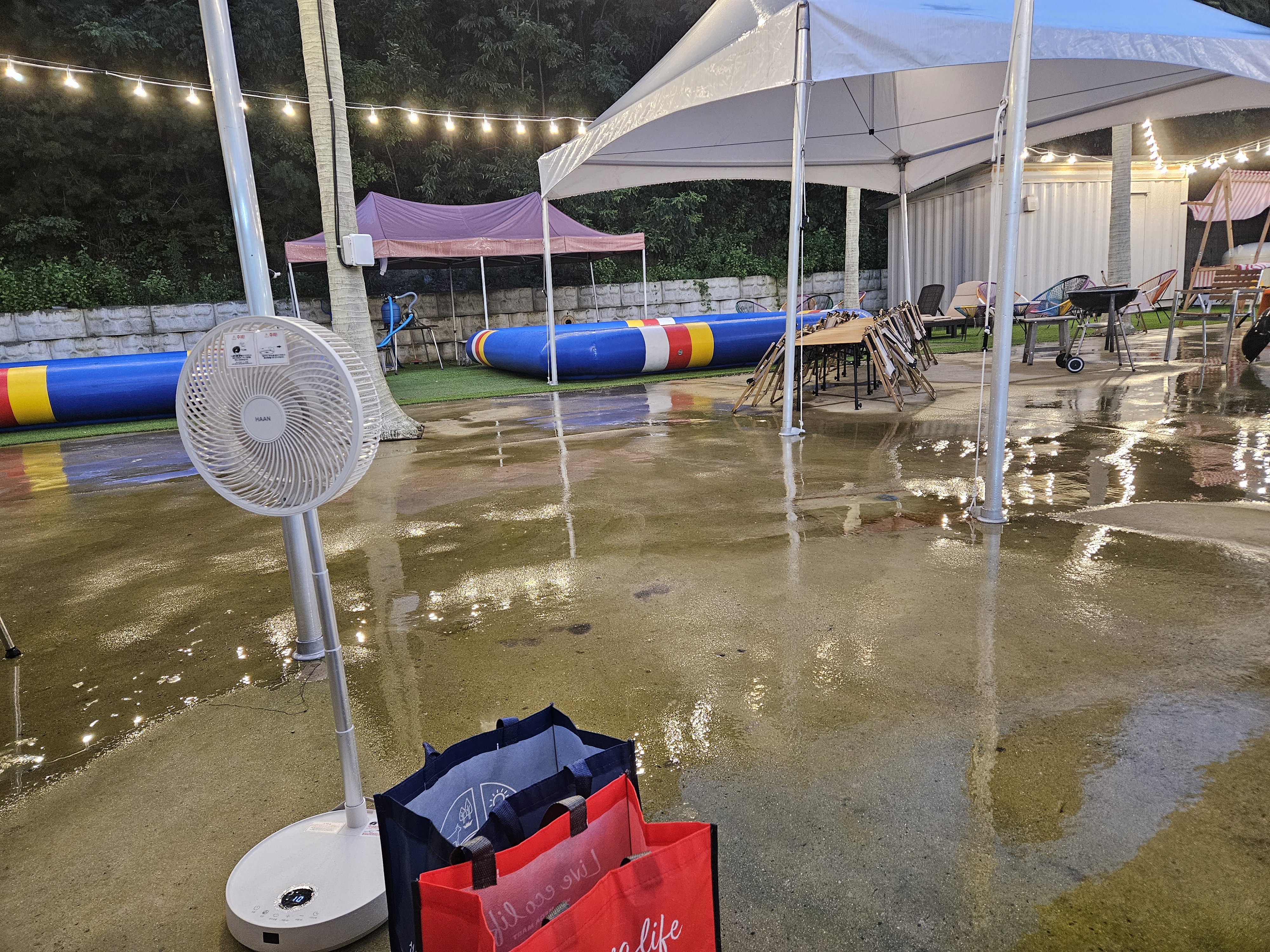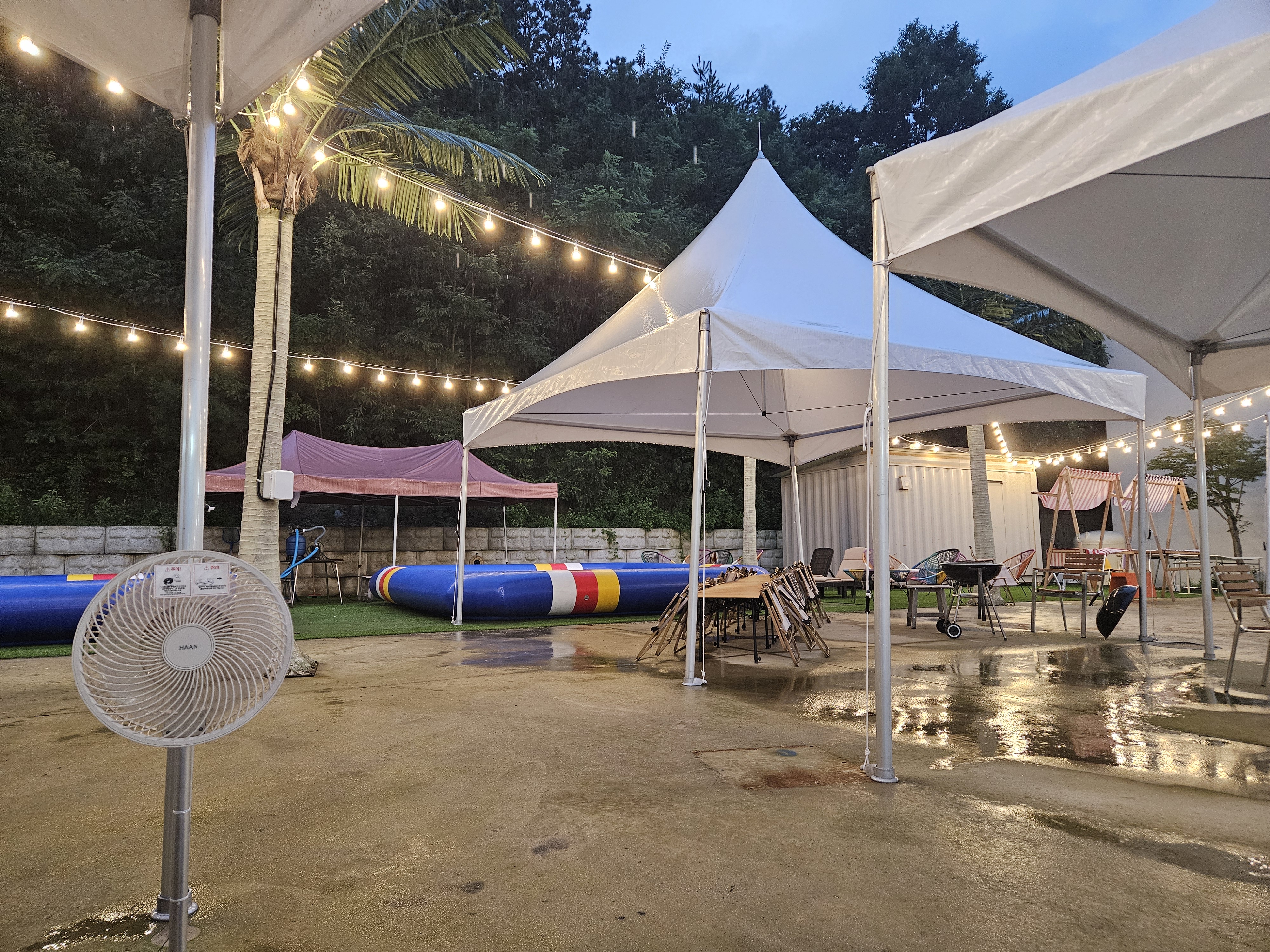 바베큐 먹을 때에도 비가 왔는데