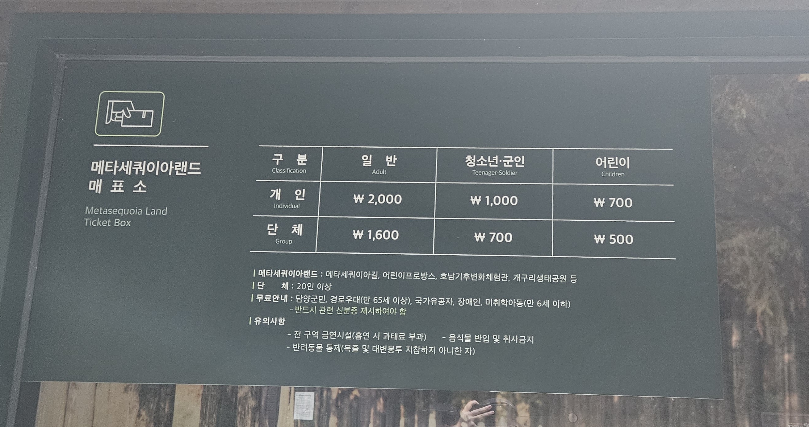 일반 성인 2천원 청소년 군인 1천원 어린이 700원