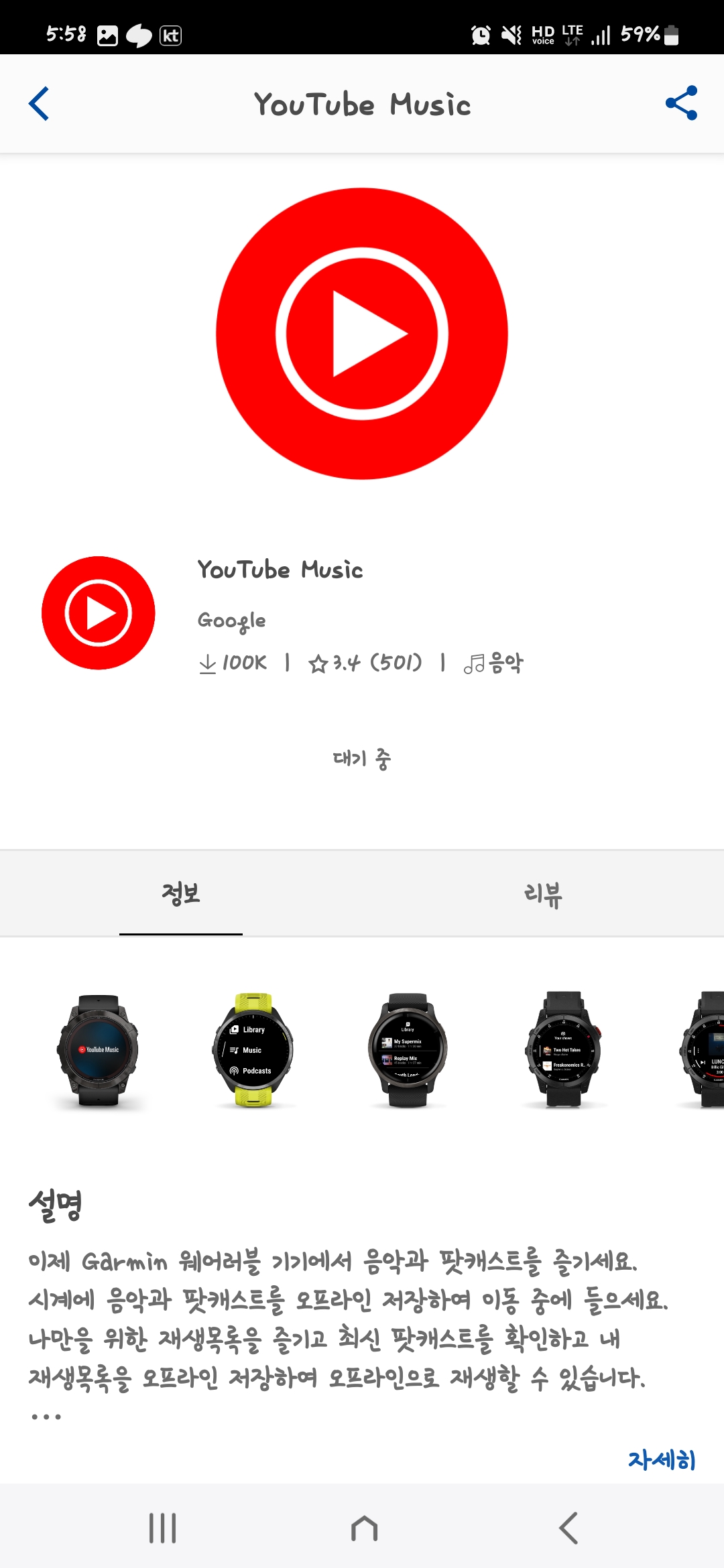 2. connect iq에서 유튜브 뮤직을 검색해서 설치한다.
