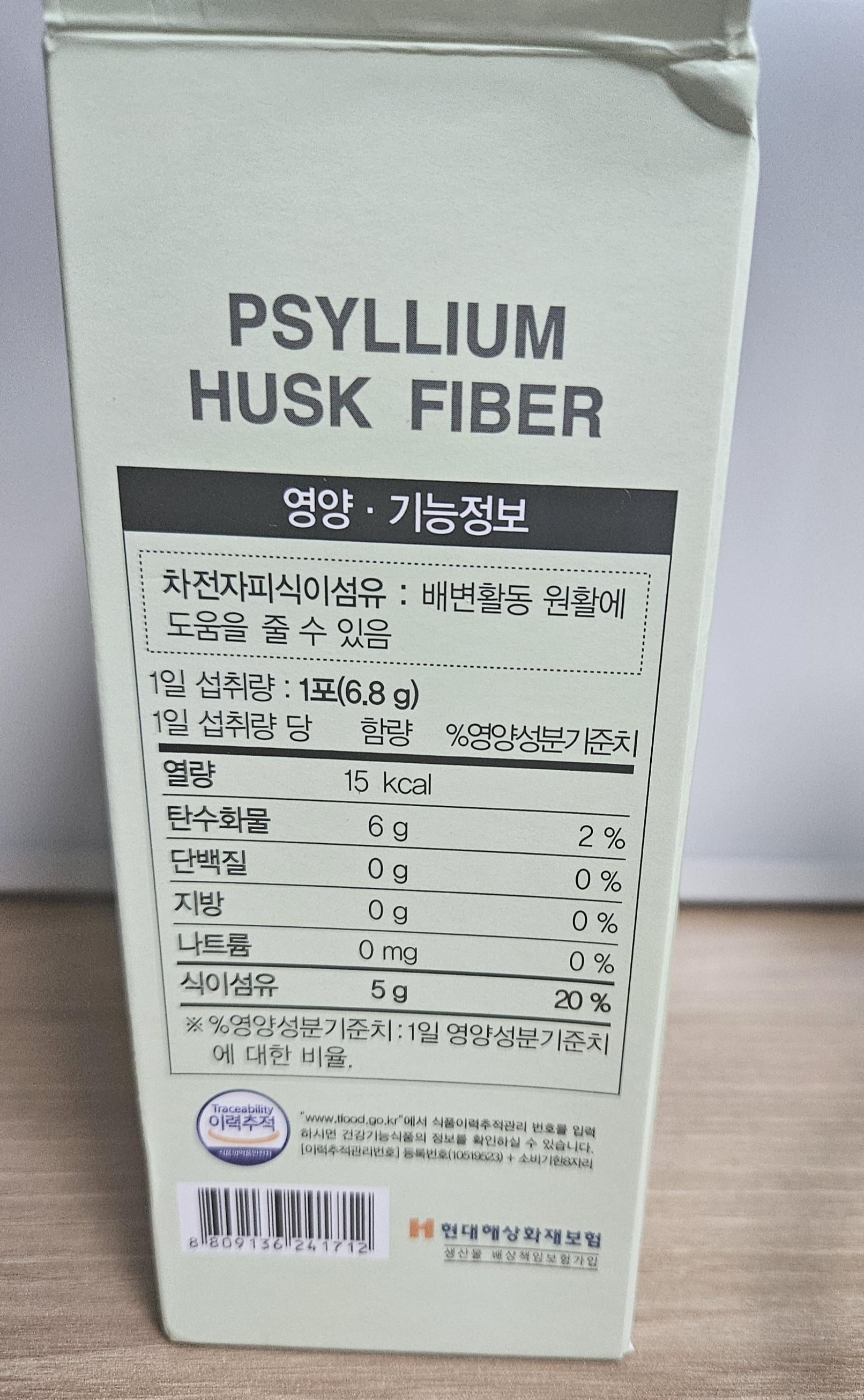 이렇듯 종근당 차전자피에는 1포당 약 5g의 식이섬유가 들어가있고