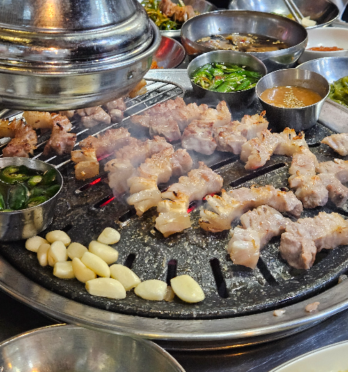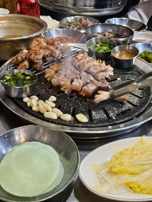 고기를 탁탁 한번에 막 네개 다섯개씩 뒤집어 주시는데 너무 멋있었다.