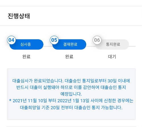 바로 대출승인 통지일로부터 30일 이내에 반드시 대출이 실행돼야 하므로 이를 감안하여 대출승인 통지가 된다는 것이다!!!