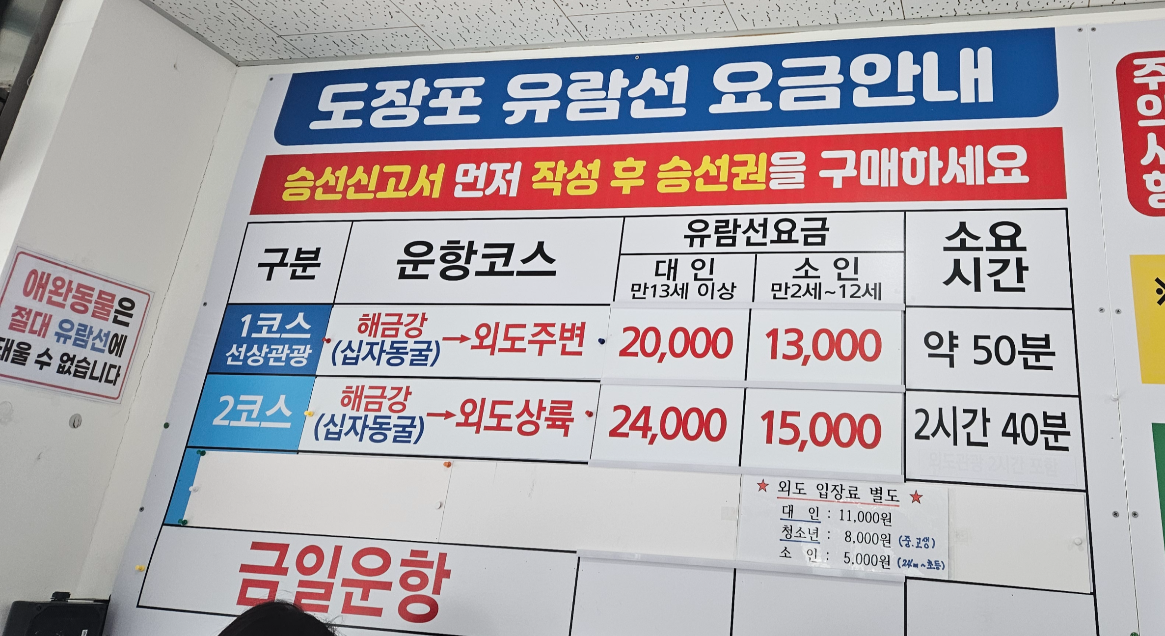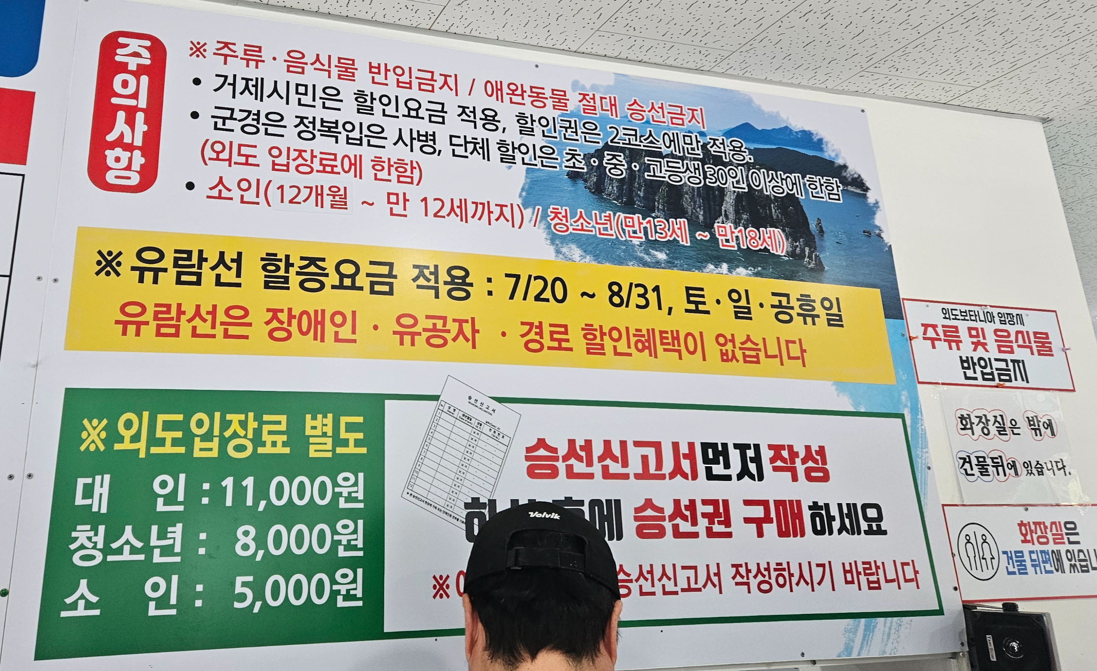 중요한 점은 유람선은 장애인, 유공자, 경로 할인 혜택이 없다는 것이고