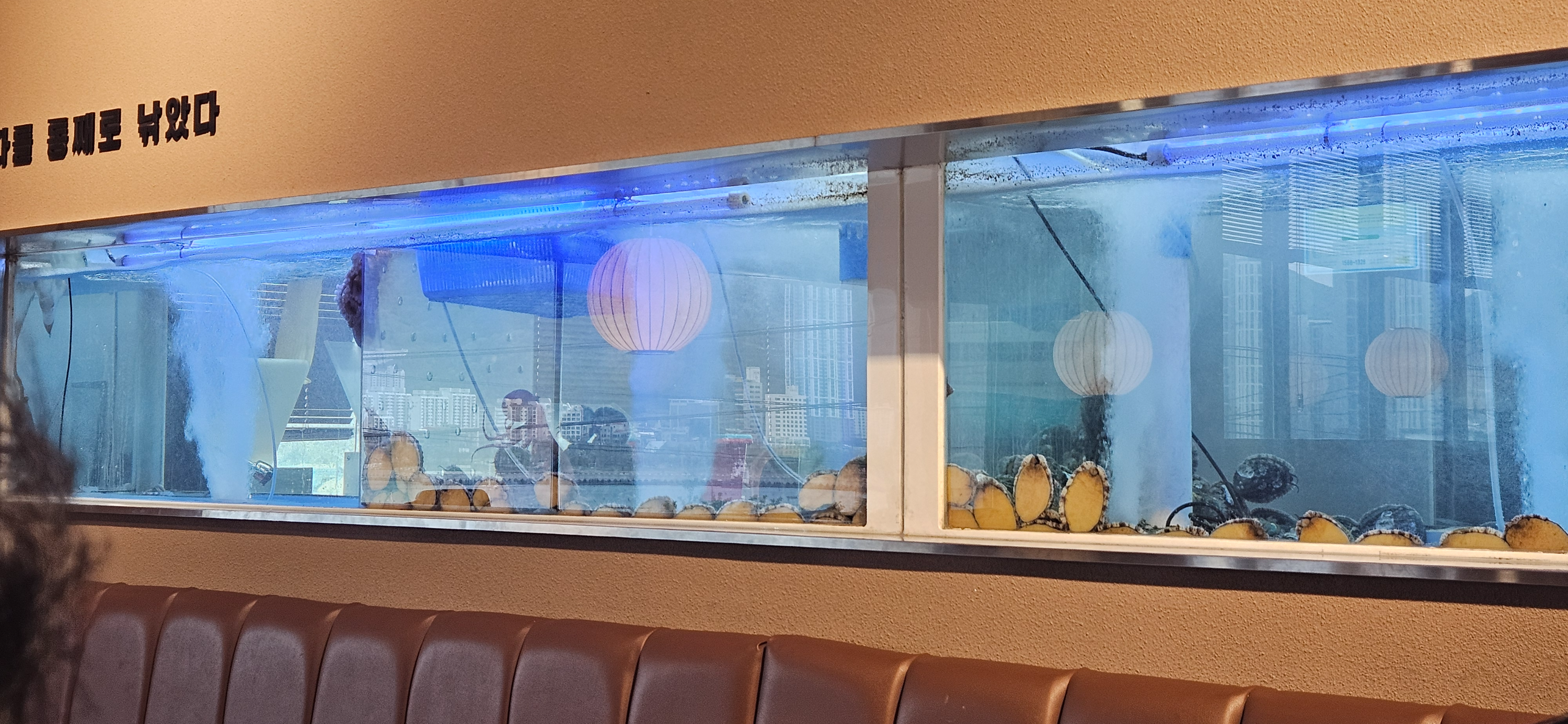 우리가 앉은 자리에서 뒤를 돌아보면 전복과 낙지를 볼 수 있다.