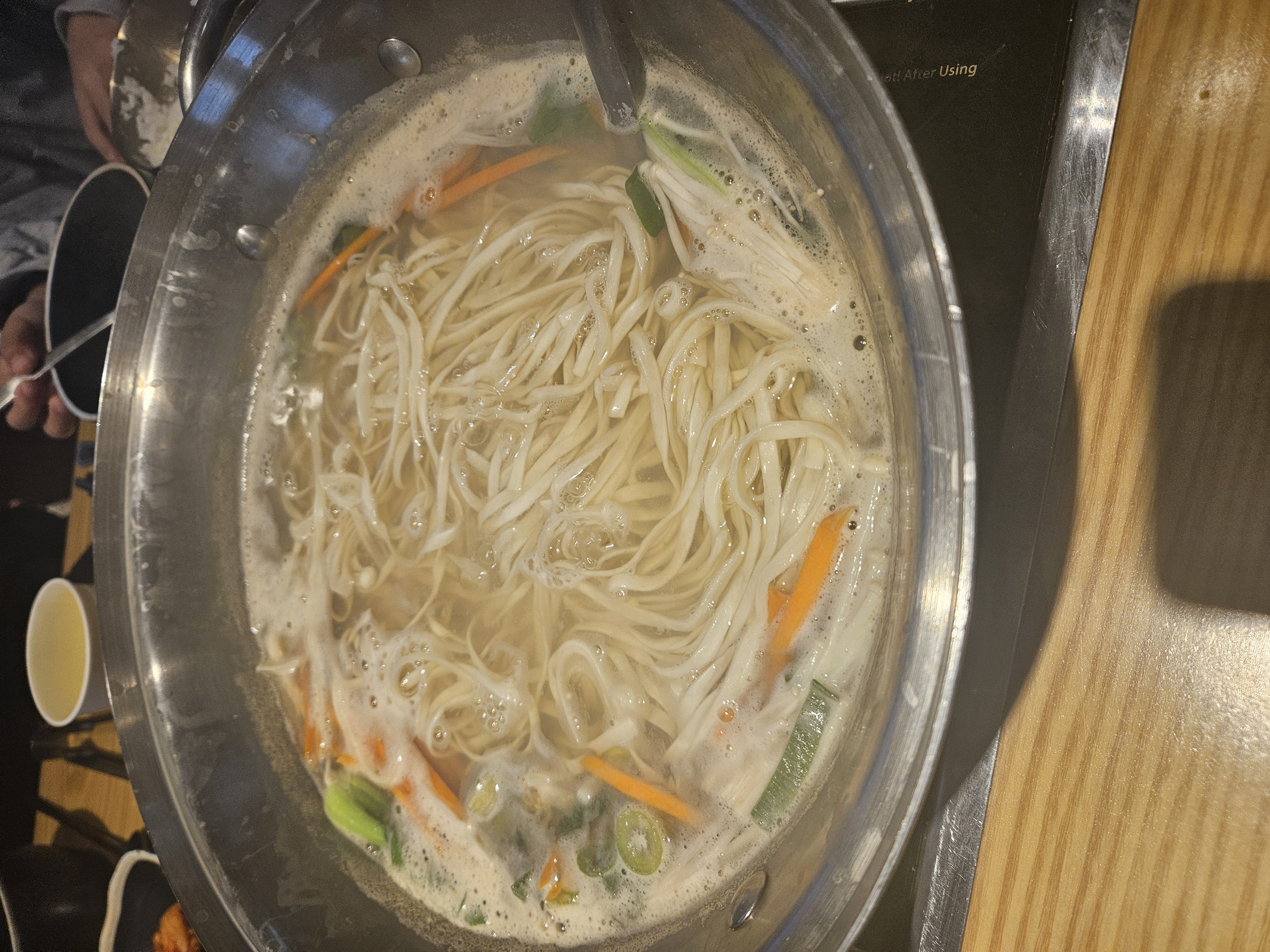 오픈 손님이라 그런지 직원분이 알아서 오셔서 해물 거의 다 드셔가는데 면 삶아드릴까요