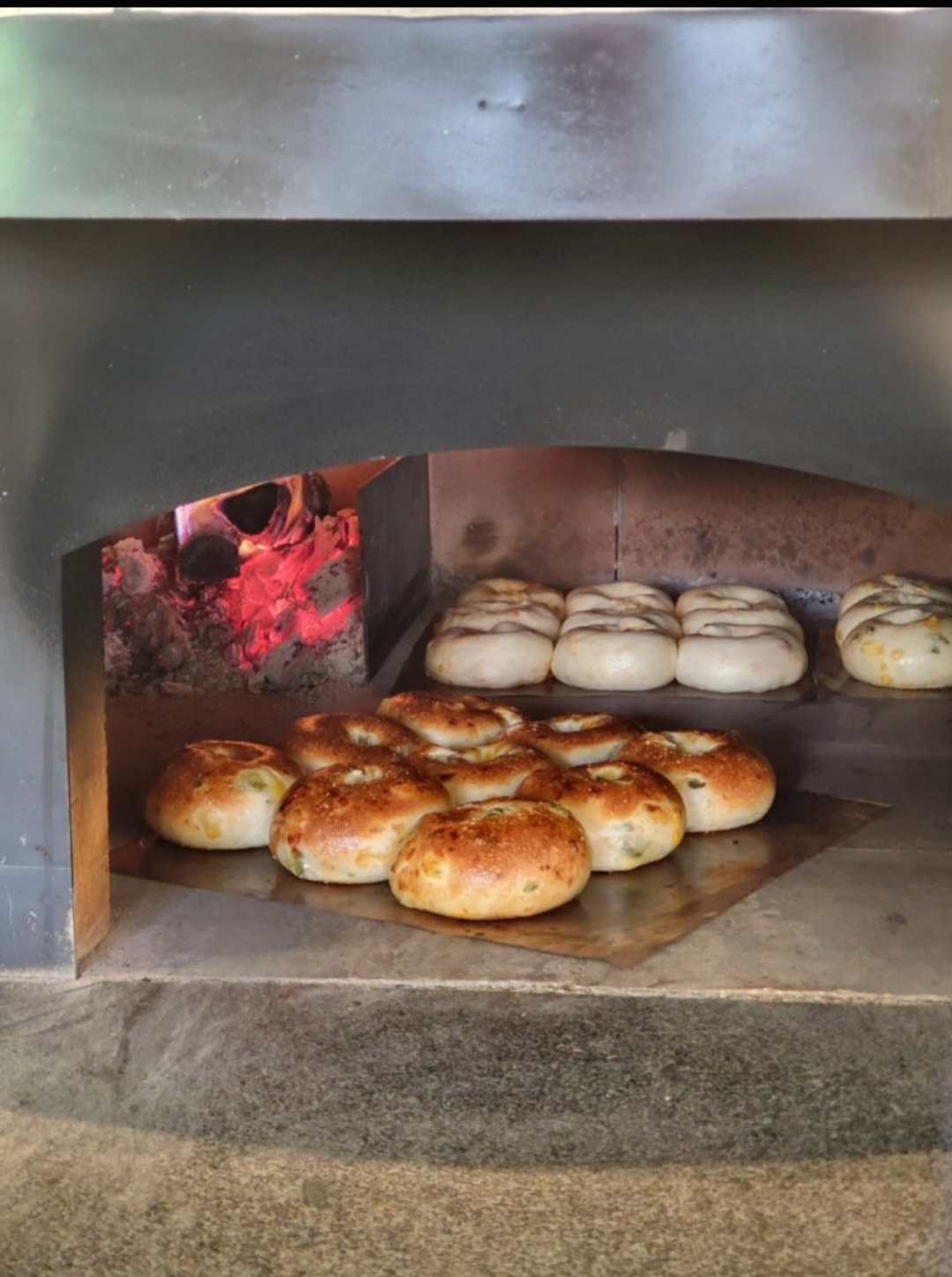 위의 사진처럼 화덕에 베이글을 굽는 것 같은데