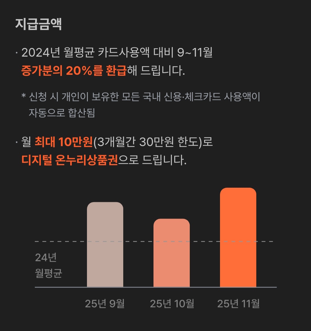 중요한 점은 한번만 신청을 해도 11월까지 소비증가분에 대한 페이백을 지급한다는 것이다.